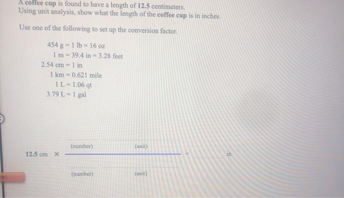 Solved A Coffee Cup Is Found To Have A Length Of 12 5 Chegg Com